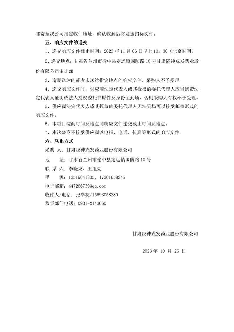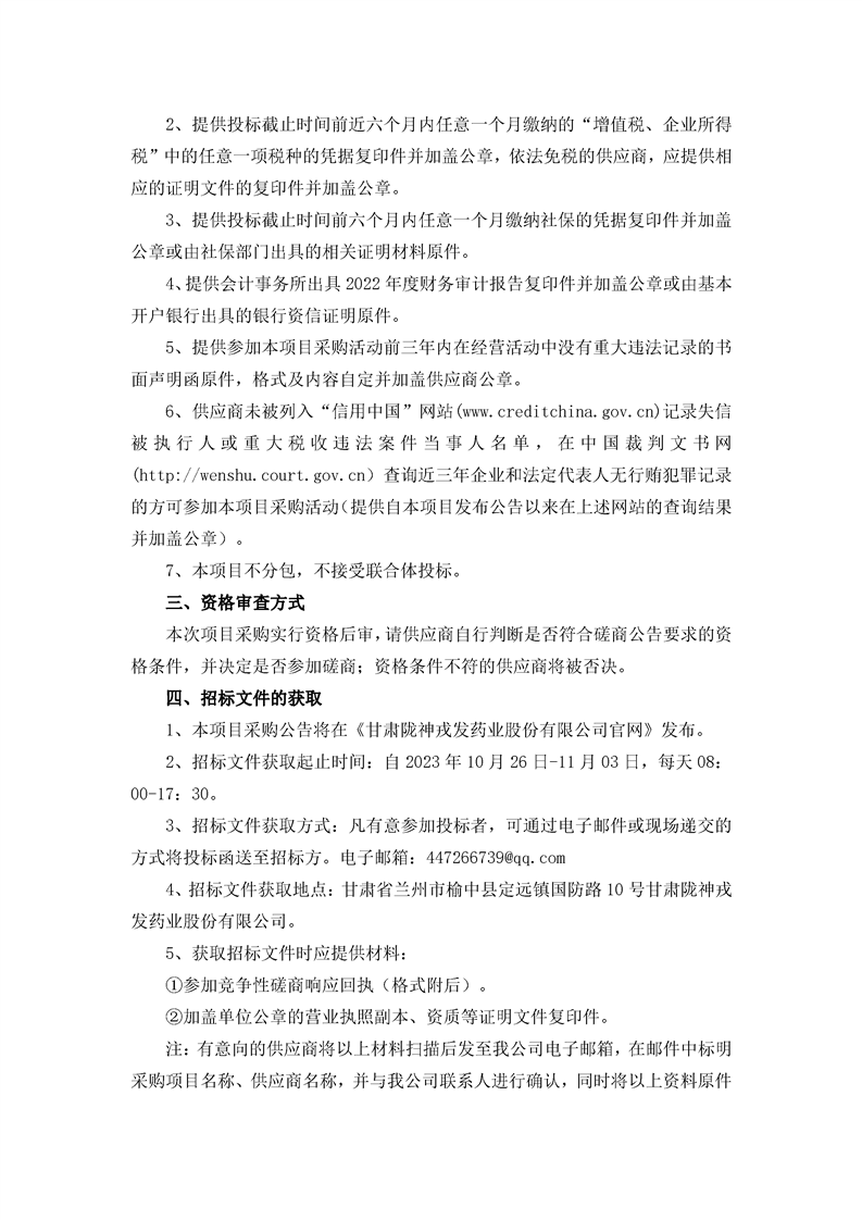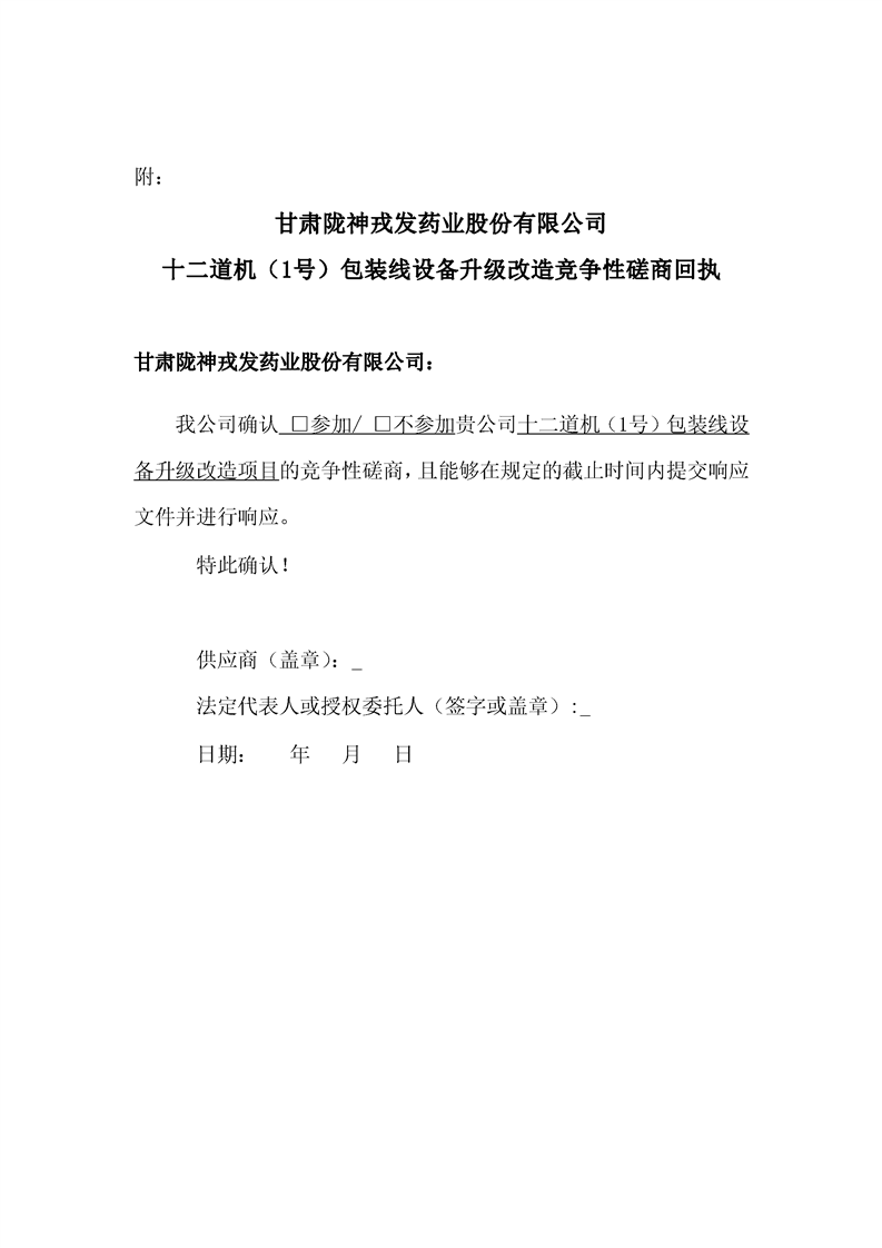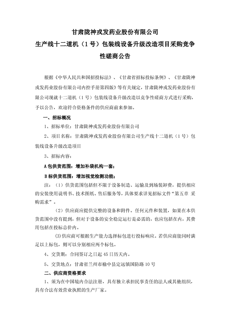 甘肃陇神戎发药业股份有限公司生产线十二道机(1号)包装线设备升级改造项目采购竞争性磋商公告