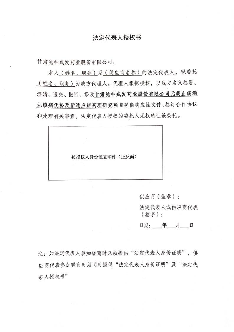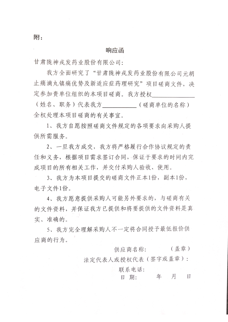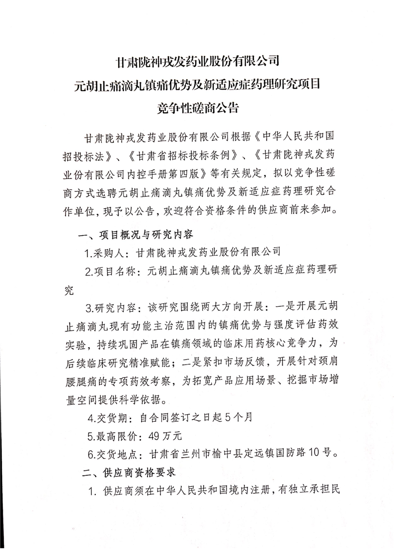 甘肃陇神戎发药业股份有限公司元胡止痛滴丸镇痛优势及新适应症药理研究项目竞争性磋商公告