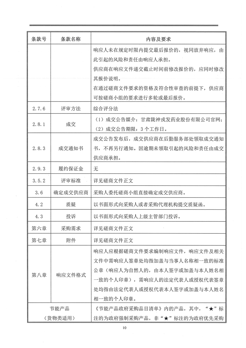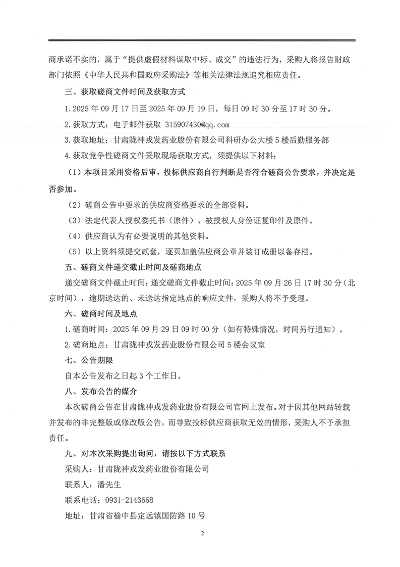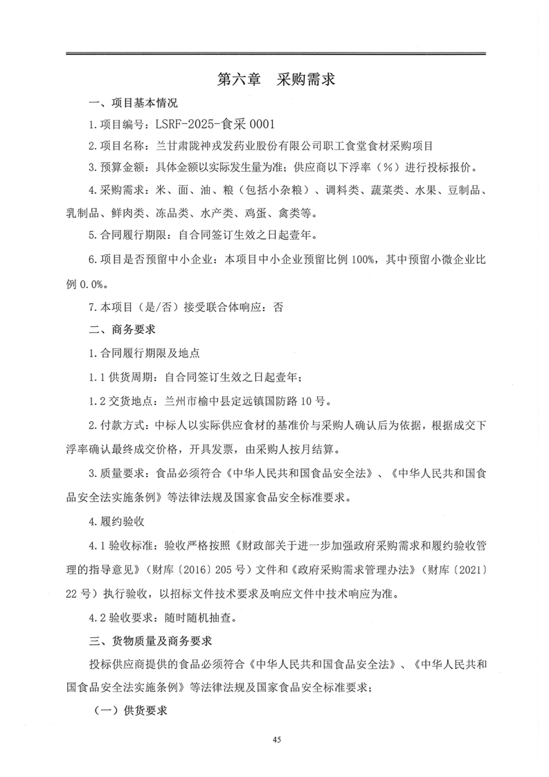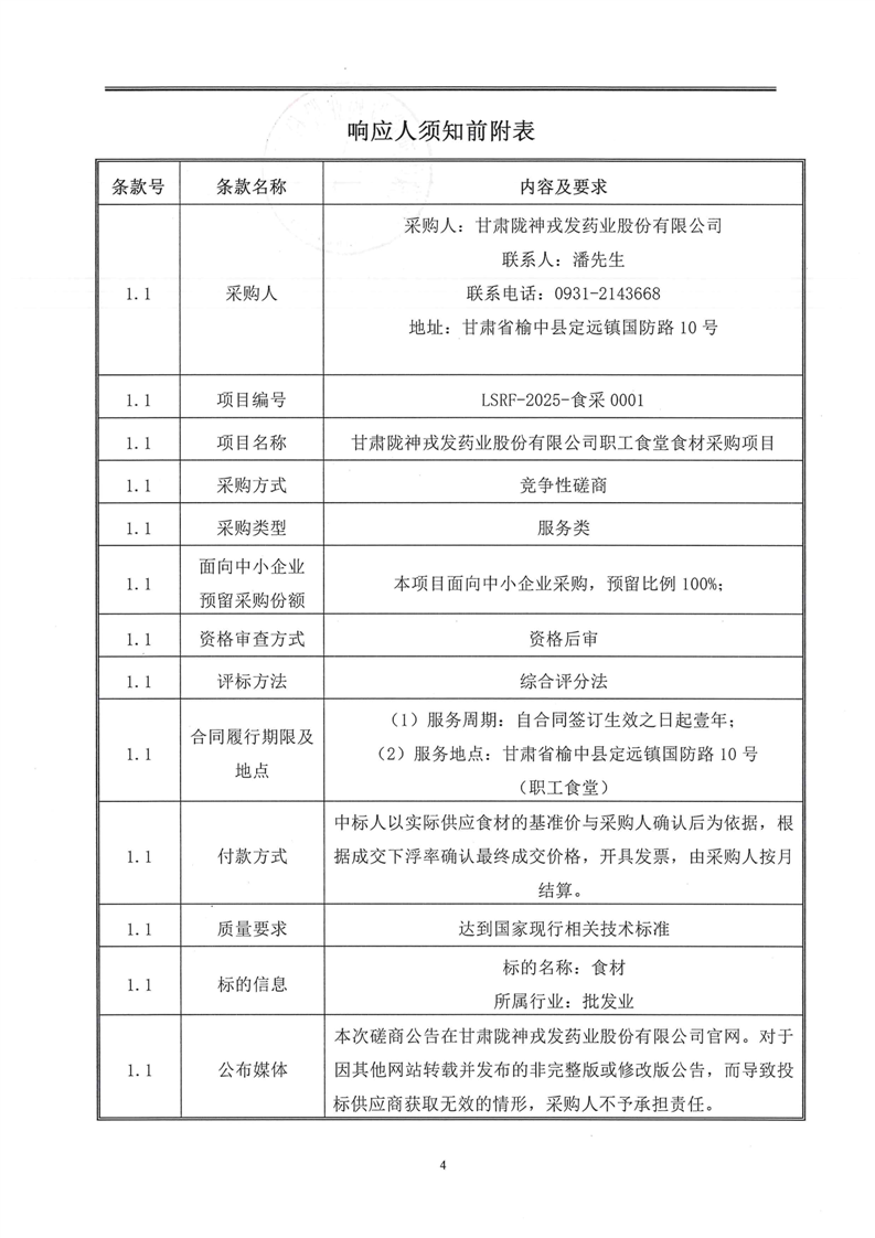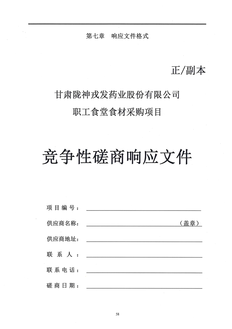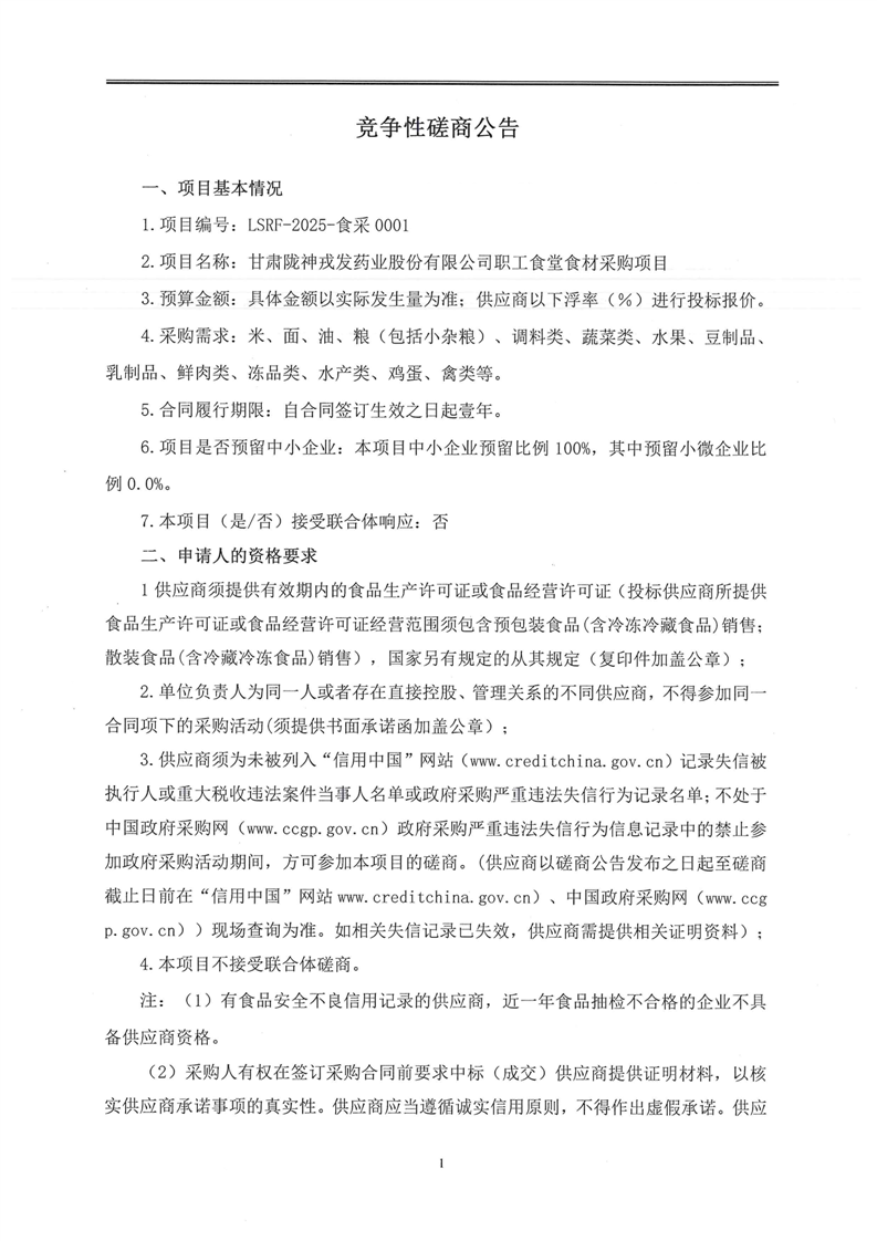 甘肃陇神戎发药业股份有限公司职工食堂食材采购项目竞争性磋商文件