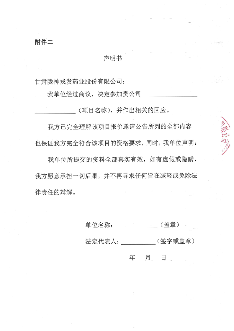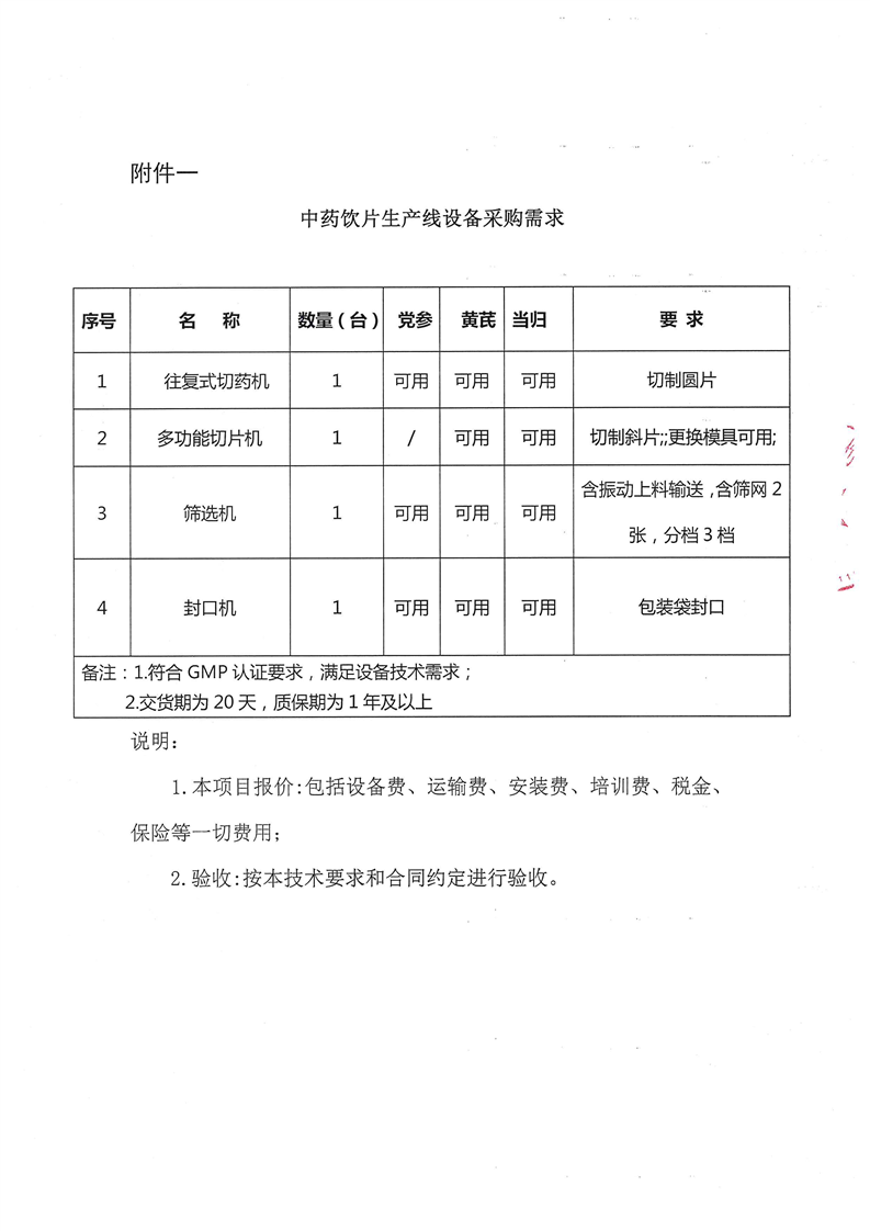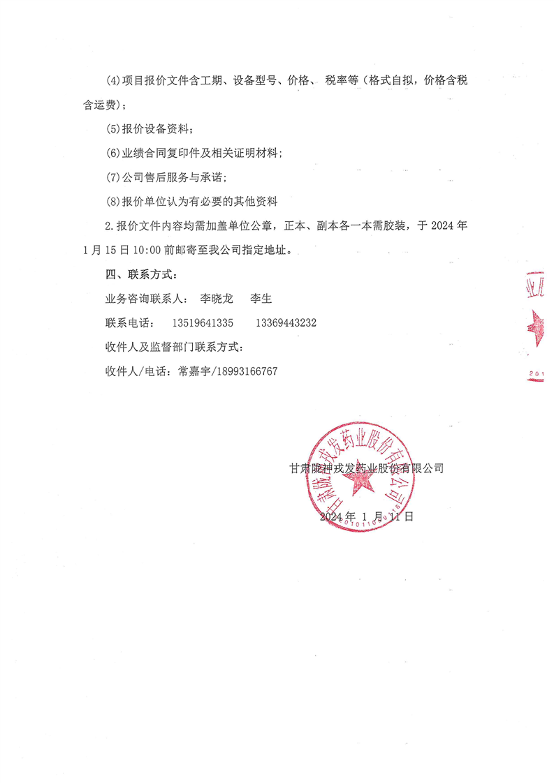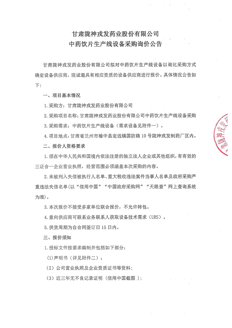 甘肃陇神戎发药业股份有限公司中药饮片生产线设备采购询价公告