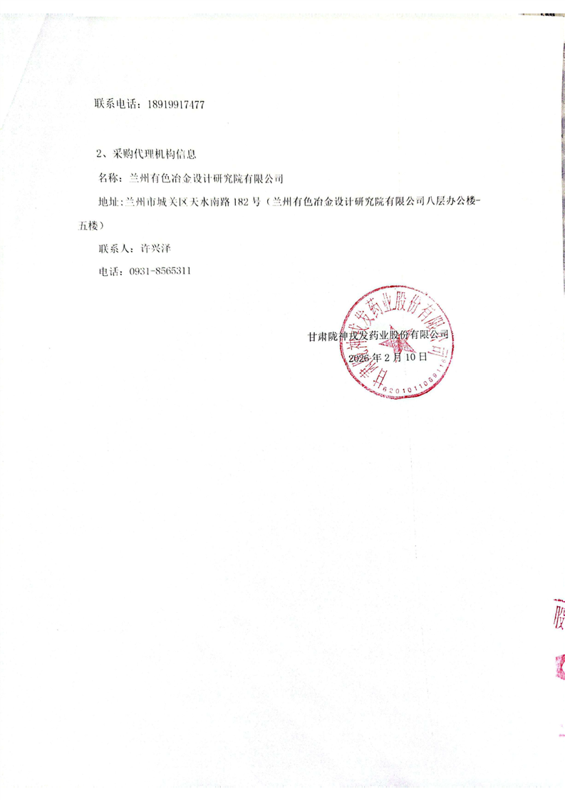 甘肃陇神戎发药业股份有限公司2026年度三七、丹参中药材采购项目(二次公告) 一标包三七中药材采购 成交结果公告