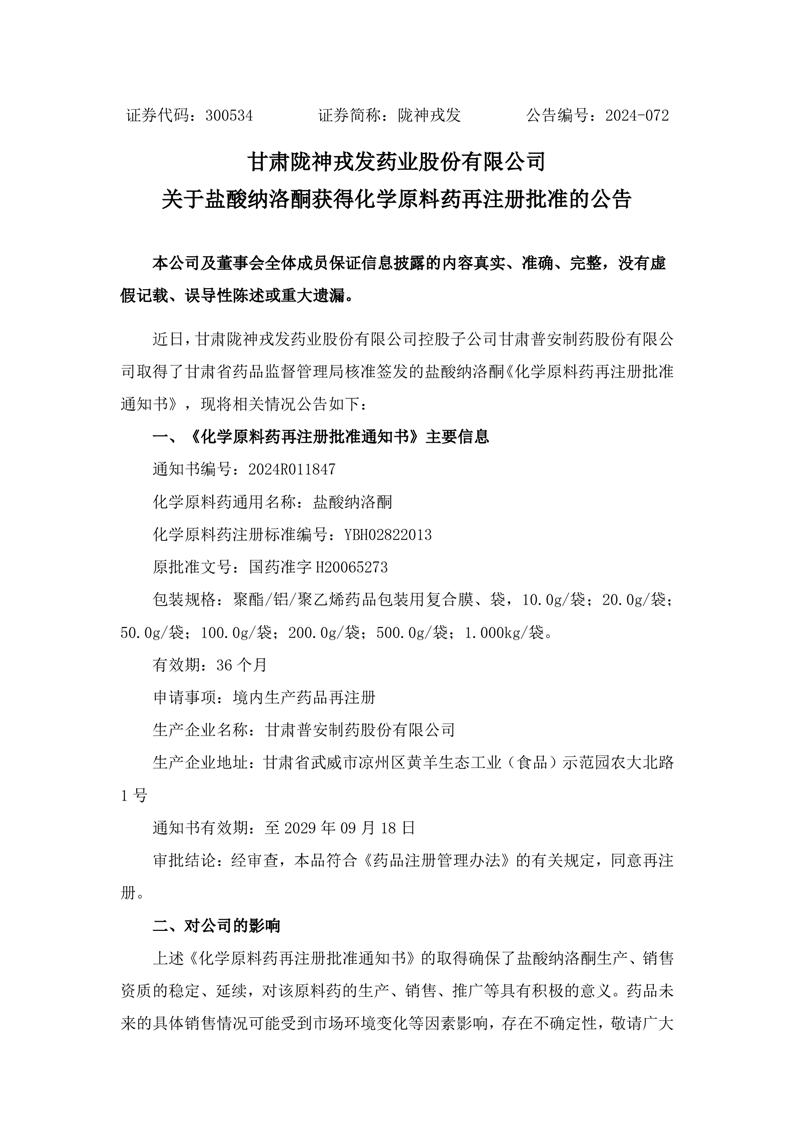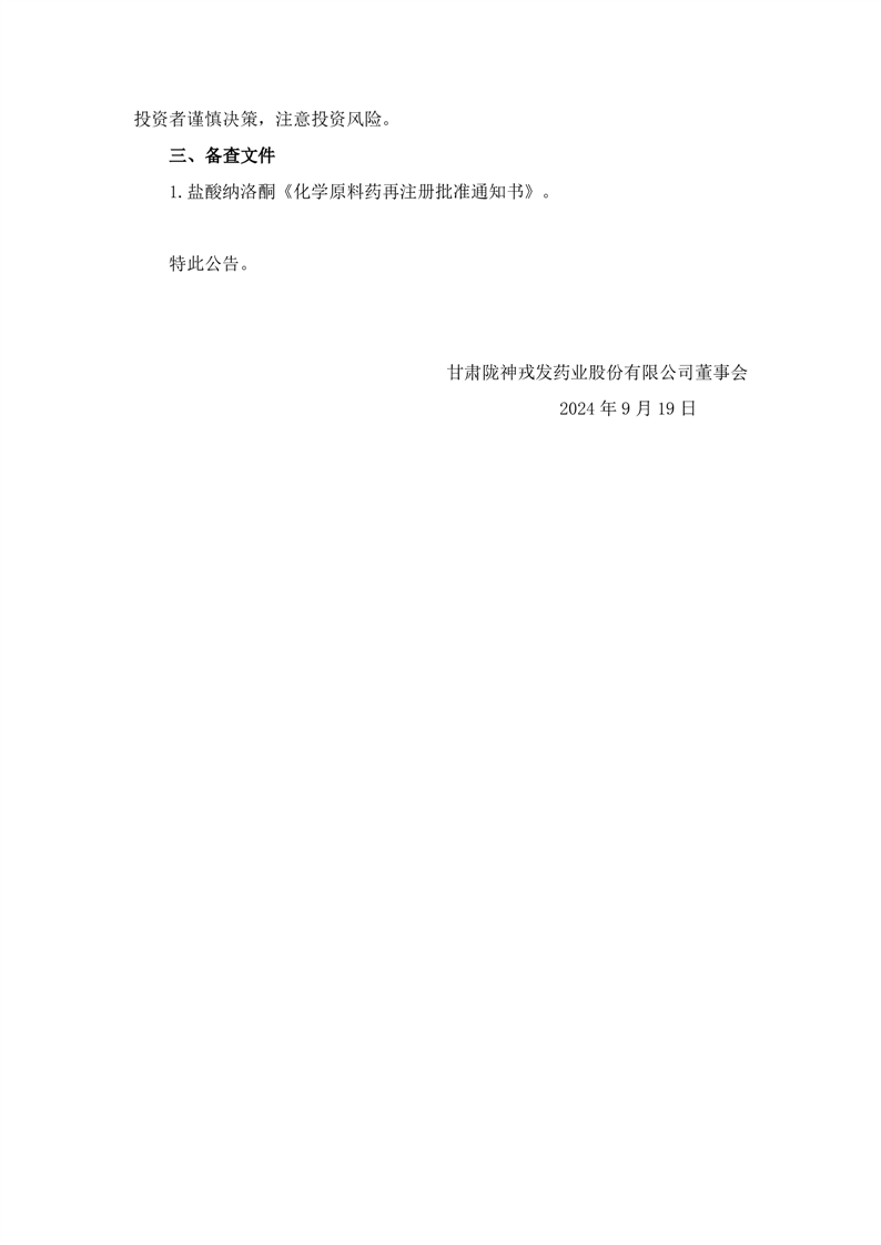 关于盐酸纳洛酮获得化学原料药再注册批准的公告