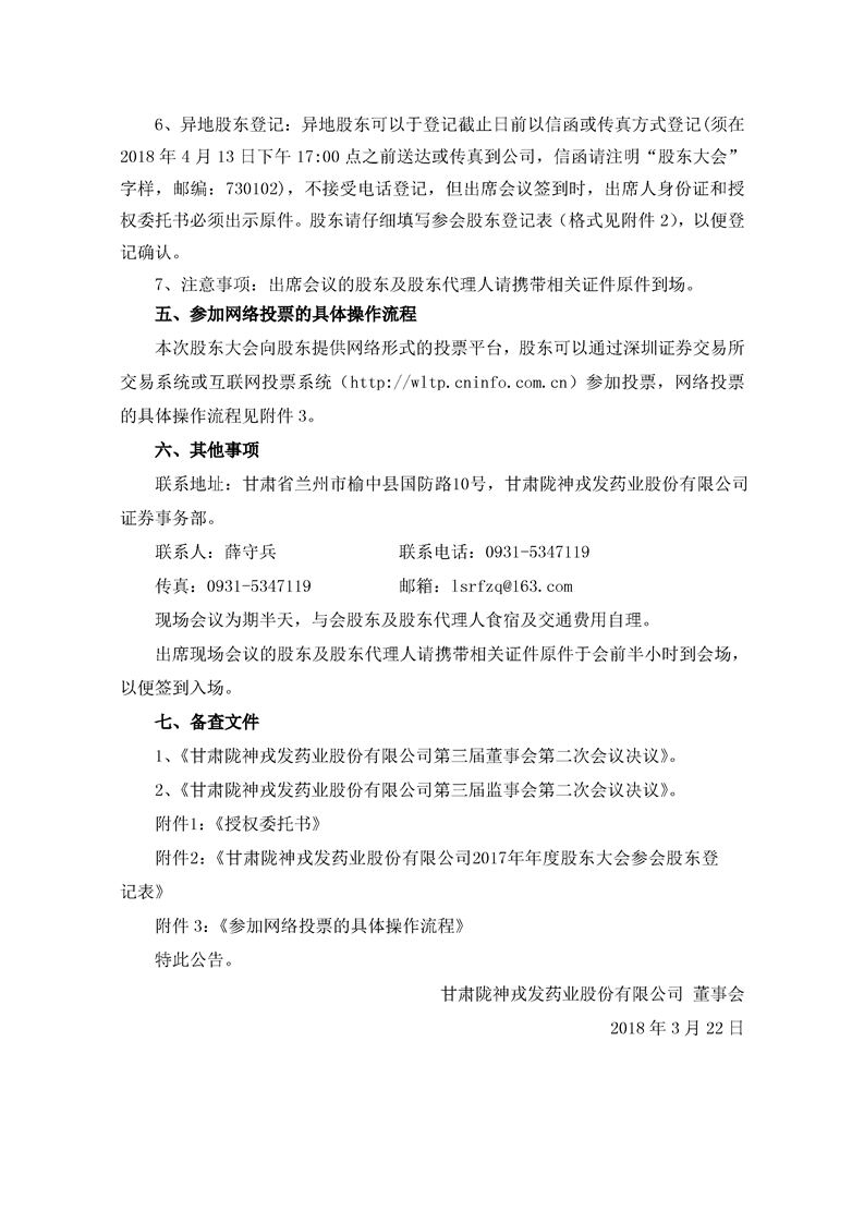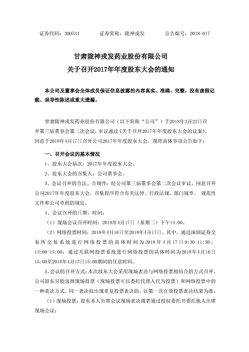 关于召开2017年年度股东大会的通知