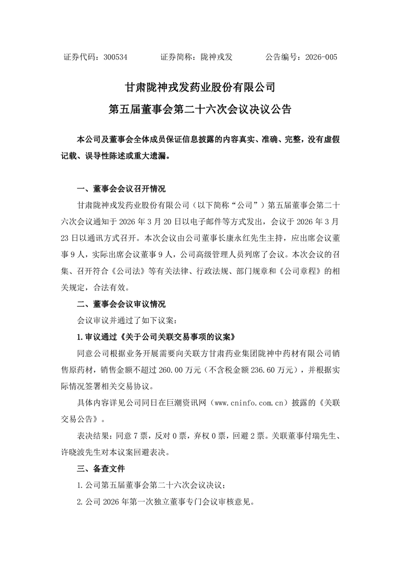 第五届董事会第二十六次会议决议公告