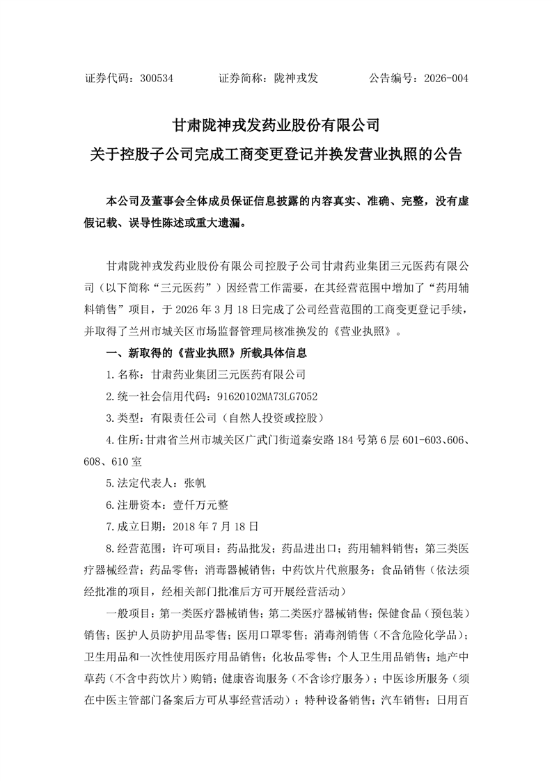 关于控股子公司完成工商变更登记并换发营业执照的公告