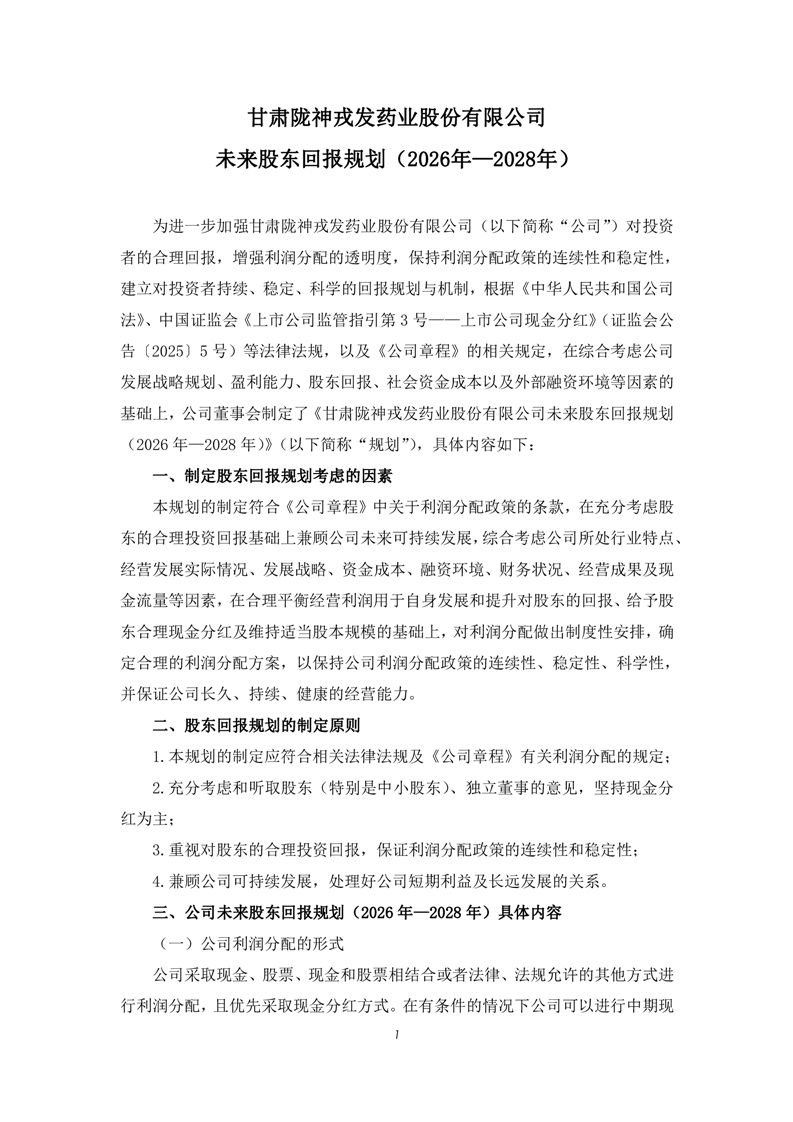 未来股东回报规划(2026年—2028年)