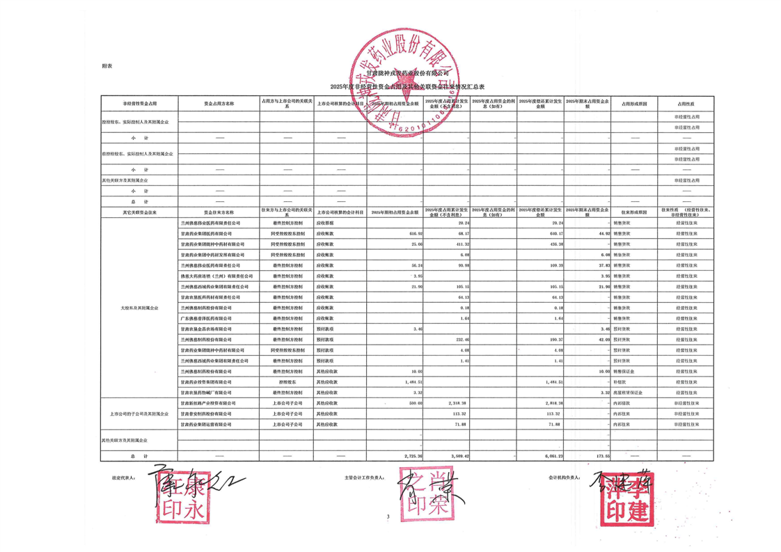 2025年度非经营性资金占用及其他关联资金往来情况汇总表