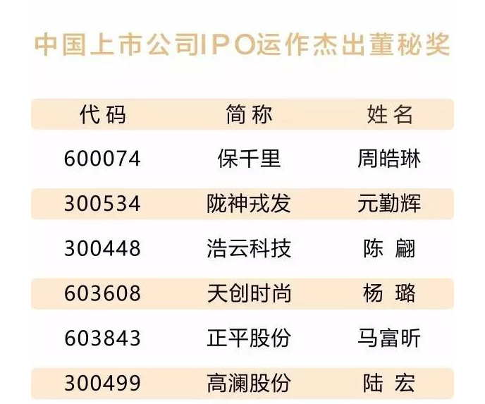 å ¬å¸è£äºã坿»ç»çãè£äºä¼ç§ä¹¦å å¤è¾è£è·âä¸å½å䏿¿ä¸å¸å ¬å¸ä¼ç§è£ç§å¥âãâä¸å½ä¸å¸å ¬å¸IPOè¿ä½æ°åºè£ç§å¥âåâ第19å±ä¸å½ä¸å¸å ¬å¸æä½³éçè£ç§å¥âä¸é¡¹æ®è£ã