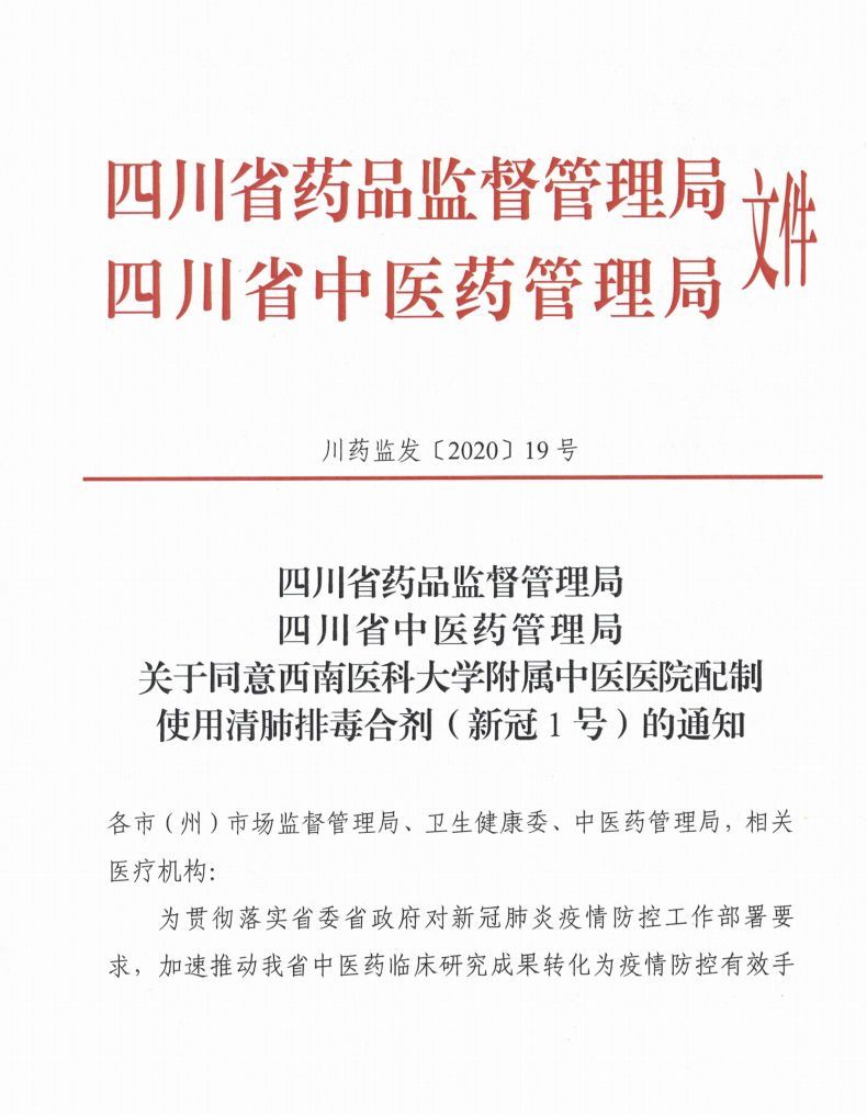 âæ°å 1å·â夿¹æ¥æºäºå½å®¶ä¸å»è¯ç®¡çå±åå ¬å®¤ãå½å®¶å«å¥å§åå ¬å èåå°åçãå ³äºæ¨èå¨ä¸è¥¿å»ç»åææ²»æ°åå ç¶ç æ¯ææçèºçä¸ä½¿ç¨âæ¸ èºææ¯æ±¤âçéç¥ãï¼åæä¸´åºè§å¯çææ¾èã