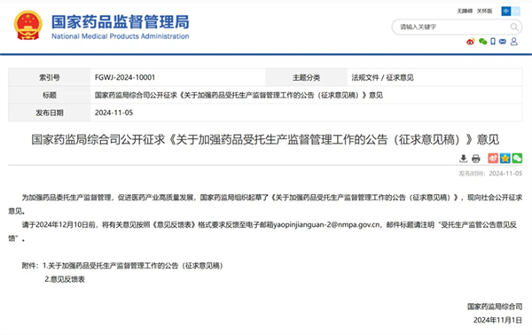 ãã为å 强è¯åå§æç产çç£ç®¡çï¼ä¿è¿å»è¯äº§ä¸é«è´¨éåå±ï¼å½å®¶è¯çå±ç»ç»èµ·èäºãå ³äºå 强è¯ååæç产çç£ç®¡çå·¥ä½çå ¬åï¼å¾æ±æè§ç¨¿ï¼ãï¼ç°å社ä¼å ¬å¼å¾æ±æè§ã