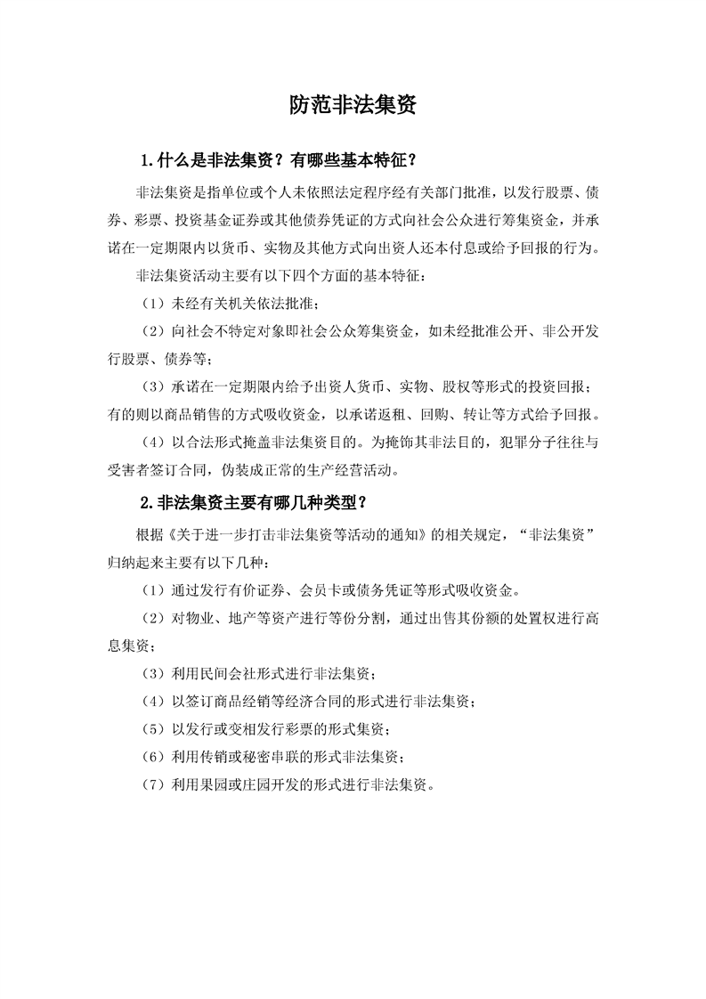 防范非法集资